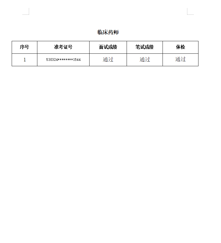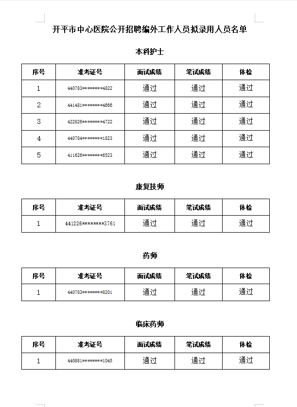 公开招聘工作人员拟录用人员公示
